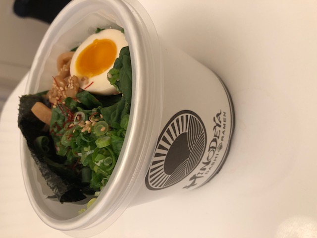 今はテイクアウトのみですが、もうすぐアウトドアダイニングできるように準備中とのこと。ラーメンも美味しいのですが、グリーン餃子とスパイシー枝豆もおすすめです。ビールにとても合います。また、通常ラーメン屋と和食レストランはランチ後からディナー開始前に休み時間が入りますが、HINODEYAさんはその休み時間がないのが嬉しいです。