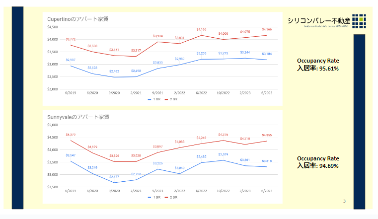 シリコンバレーエリアの最新の賃料統計データーを入手したい方は、弊社のウェブサイトのこのページからメールアドレス等を登録すると入手できます。