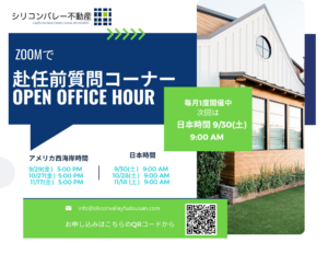 こんにちは。シリコンバレー不動産です。 10月と11月は多くの駐在員様がサンノゼで新たなスタートを切る時期です。そんな皆様のために、サンノゼ赴任前質問コーナー「Open Office Hour」を開催いたします! 9月3 […]