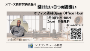 こんにちは。シリコンバレー不動産です。 シリコンバレーのサンノゼ、パロアルト、メンローパークでオフィスを賃貸する際、日本の不動産契約に慣れている方にとっては、手続きや契約書の内容が大きく異なる点がいくつかあります。今回は […]